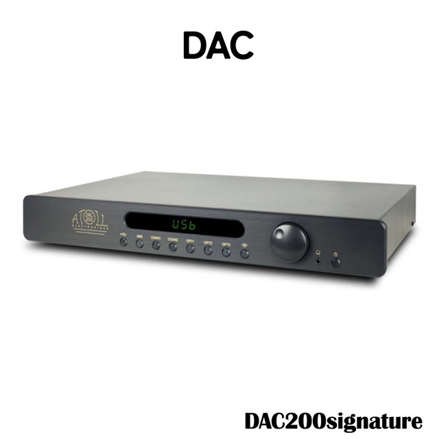 ※本商品はメーカー取寄せ品となります。納期は約1ヵ月~2ヵ月程となります。 DAC200signatureの特徴 ESSテクノロジー社最新のフラッグシップES9028PROを搭載。ローノイズ・クロック・オシレーターとの組み合わせで、これまでにない高S/N・広ダイナミック・レンジの特性を獲得したハイエンド・モデルです。また超低ノイズ・レギュレーターES9311EQとのシームレスな結合によって、電源供給も最適化されています。 出力ステージはディスクリート構成でノンNFB。高音質なMKPコンデンサーも使用しました。デジタル入力はS/PDIFからUSBまで9系統。アナログ出力にはXLRバランス端子も備え、デジタル・イコライザーなどへの接続用にデジタル出力も用意されています。リモコンにはオン/オフ可能なボリュームやフィルター特性の切り替え機能もご利用いただけます。 〈対応フォーマット〉……………………………………………………………………………………………… ●光 & 同軸入力 16-24bit(44.1kHz、48kHz、88.2kHz、96kHz、176.4kHz、192kHz) ●USB(B-Type)入力 PCM:16-32bit(44.1kHz、48kHz、88.2kHz、96kHz、176.4kHz、192kHz、 352.8kHz、384kHz、705.6kHz、768kHz) DSD:DSD64、DSD128、DSD256、DSD512 ※これらのパフォーマンスはUSBソースのソフトウエアまたはOSにより異なる場合があります。 ●入力 : USB(B-Type)×1、光デジタル×3、同軸デジタル×3、AES(バランス)×1、Bluetooth×1 ●出力 : RCA×1、XLR×1、光デジタル×1、同軸デジタル×1 DAC200signatureの仕様 Frequency response:20 Hz - 20 kHz (± 0.1 dB) THD at 1 Khz (0 dBF):<0,001% 24bit Signa/noise ratio:129dB Dynamic Range:133dB Maximum Output level line:2,5 Vrms Maximum Output level XLR:2,5 Vrms Shipping weight:4 Kg Dimensions(W×H×D):440×60×280mm