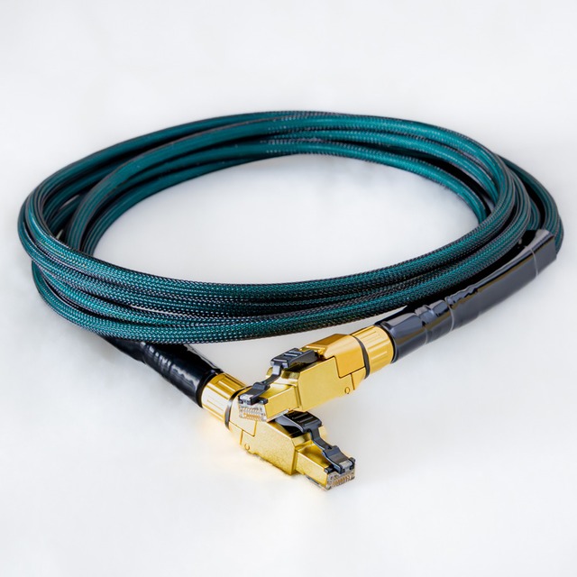 ※本商品はメーカー取寄せ品となります。納期は約1ヵ月~2ヵ月となります。 LAN-QUADRANT-TripleC-WBの特徴 ■実用新案取得の4分割構造で導体間の干渉を解決 LANケーブルは2芯1対のケーブルが4組、つまり8本もの導体が1本のLANケーブル内に存在します。 この8本の導体がエイリアンクロストークと呼ばれる干渉を起こしデジタル伝送における最大の音質劣化要因であるジッターなどの伝送劣化に繋がってしまいます。 カテゴリ6の十字介在やカテゴリ7の2芯1対それぞれにシールドを施す処置でも導体間干渉の根本的な問題は解決出来ません。 LAN-QUADRANT-TripleC-WBは2芯シールドケーブルを4本使用する実用新案取得の4分割構造により導体間の干渉を完全に回避することに成功し、伝送スピードの向上やジッターの低減を実現します。 ■伝送スピードを向上させジッターを飛躍的に低減 画期的な4分割構造による導体間の干渉がなくなった結果、伝送スピードが速くなるのはもちろんのこと、デジタル伝送における最大の音質劣化要因であるジッターが飛躍的に減少します。 伝送スピードとジッターに関しましては一般的な計測サイトでも計れますので通常のLANケーブルとの差をぜひ計測されてみて下さい。 導体、絶縁材、介在、シース、プラグ等、全てに贅を尽くした部材を投入 LAN-QUADRANT-TrIpleC-WBは単に普通のケーブルを4分割したのとは違います。 導体には世界初の音響専用鍛造導体PC-TripleC、絶縁材には比誘電率と誘電正接に優れたテフロン、介在には静電気の発生を防止する天然シルク、シースには貴陽石とトルマリンを含浸させて帯電防止、LAN(RJ45)端子にはテレガードナーの最高級銀メッキバージョンを採用するなど、伝送特性と音質を高めるための贅を尽くした部材をフル投入しています。 ■導体径を太くすることでよりワイドレンジ化を実現 LAN-QUADRANT-のTripleC-WBは導体径を以前のモデルLAN-QUADRANT-TripleCのφ0.5mmからφ1mmに太くした表皮効果により周波数特性を高域低域方向ともに広げることに成功しました。それでいてケーブル自体の取り回しは硬くて太い1本構造のLANケーブルよりも柔軟性を確保しています。
