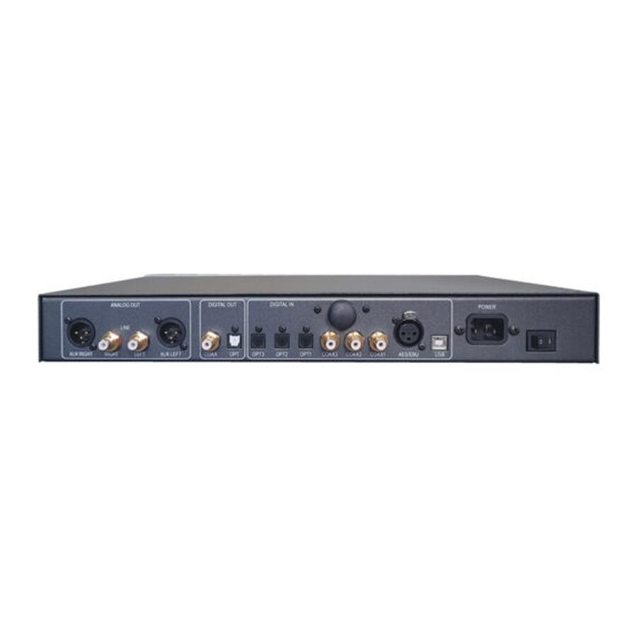 出力ステージはディスクリート構成でノンNFB。高音質なMKPコンデンサーも使用しました。デジタル入力はS/PDIFからUSBまで9系統。アナログ出力にはXLRバランス端子も備え、デジタル・イコライザーなどへの接続用にデジタル出力も用意されています。リモコンにはオン/オフ可能なボリュームやフィルター特性の切り替え機能もご利用いただけます。