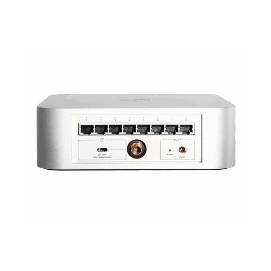 接続端子 100/1000 Base-T RJ45 ポート x 8、クロック入力端子(BNC、50Ω、25MHz)、(DC) 12V/1A, 1.2W (5.5mm x 2.5mm)
