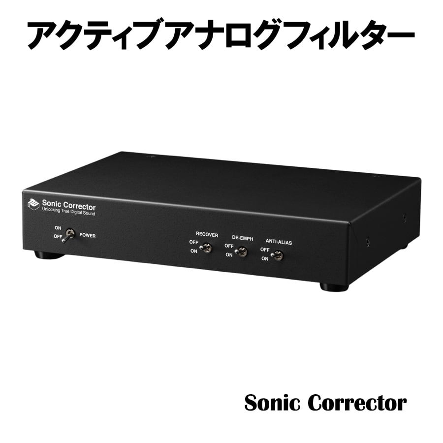 Sonic Correctorはライン(RCA/XLR)入出力を持つ、アクティブアナログフィルターです。DACやフォノイコライザーなどのソース機器の出力をSonic Correctorに入力し、Sonic Correctorの出力をプリ・プリメインアンプのライン入力に接続することでお使いいただけます。様々な音楽・音源に対応するための3つのフィルターを搭載しており、オーディオシステムで音楽を聴く幅を広げます。主な特徴は以下の通りです。
