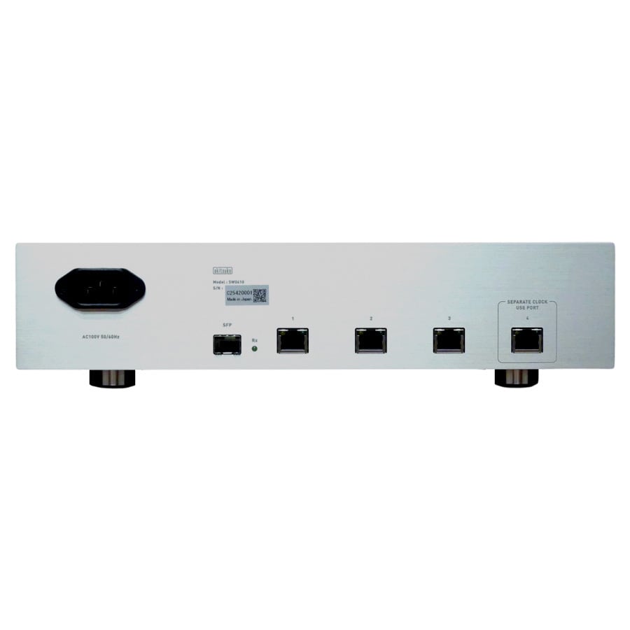 本製品 SW0410 は音質改善に好評な SW0200 を 4 台内蔵したネットワークオーディオ用 SFP ポート付き 4 ポートスイッチングハブです。