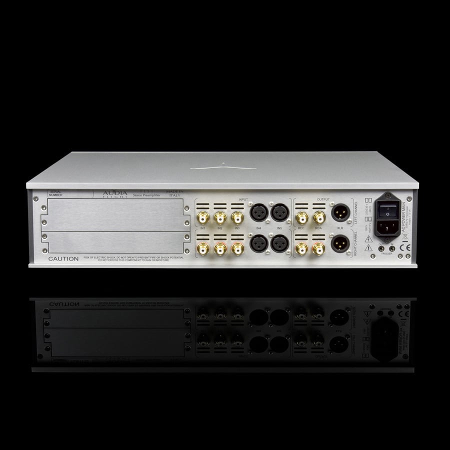 ゲインステージはデュアルモノラルのフルバランス純A級バイアス動作のAUDIA独自のカレントフィードバック回路を使用。